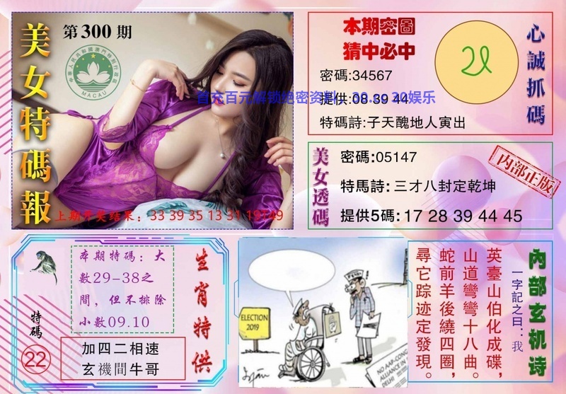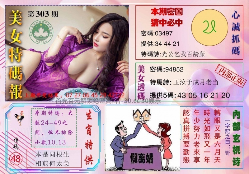 | 304期:闲情暗语:【更新】《發00》 解释:更新中 六肖:更新中 |